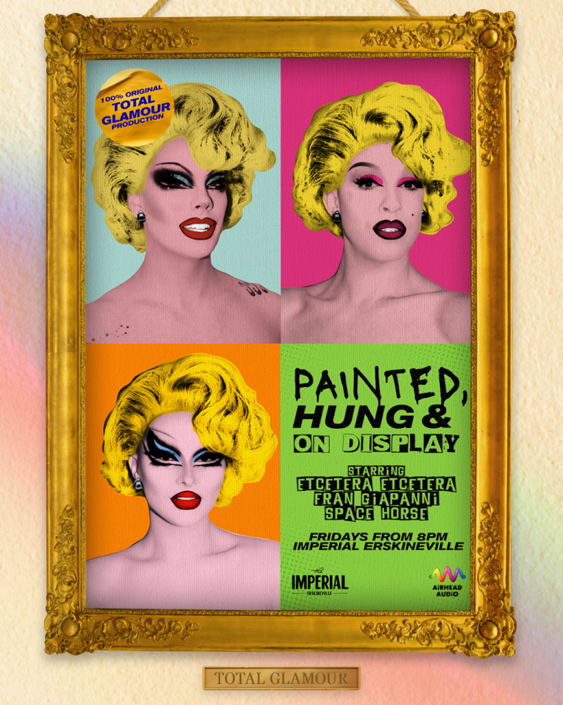 The creatively well-endowed Total Glamour Trio returns with PAINTED, HUNG AND ON DISPLAY – a new state of the ART show with multi-DIVA award winners Etcetera Etcetera, Fran Giapanni, and Space Horse.